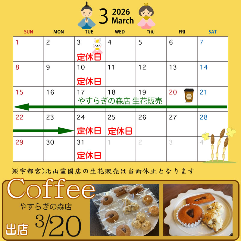 3月20日 店舗前にコーヒー&焼き菓子のキッチンカーが来ます